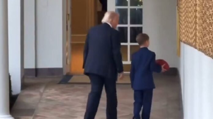 Donald Trump has sparked new concerns about his health following observations of him walking with a noticeable limp while spending time with his grandson. The US president was at the White House Presidential Walk of Fame with his nine-year-old grandson, Theodore Kushner, engaging in a game of NFL football. However, onlookers noticed Trump struggling to walk in a straight line, with some viewers even suggesting he appeared unstable and dragging one leg as he moved.