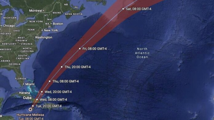 Maps tracking the storm’s path indicate that Melissa is expected to move into the North Atlantic and potentially affect Canada’s easternmost region.