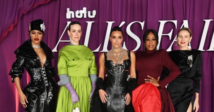 Kim Kardashian stole the spotlight at the premiere of Ryan Murphy’s latest project, All’s Fair, where she donned a stunning leather and chains ensemble. The 45-year-old celebrity is part of the cast of the upcoming Hulu series, which also features Naomi Watts, Niecy Nash, Teyana Taylor, Sarah Paulson, and icon Glenn Close.
