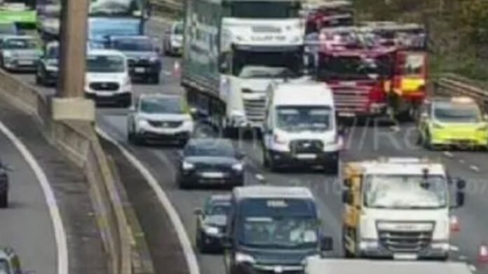 Motorway cameras revealed vehicles shifting to the outer lane to navigate around the crash site. Witnesses described the accident involving a car and a lorry, causing heavy traffic buildup. Emergency services responded to the scene, treating a man for non-serious injuries and transferring him to the Royal Stoke University Hospital.
