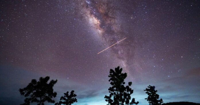 Comets, as they orbit the Sun, leave behind trails of debris that the Earth passes through. These tiny particles burn up in our atmosphere, creating luminous streaks of light known as “shooting stars,” despite not being actual stars.